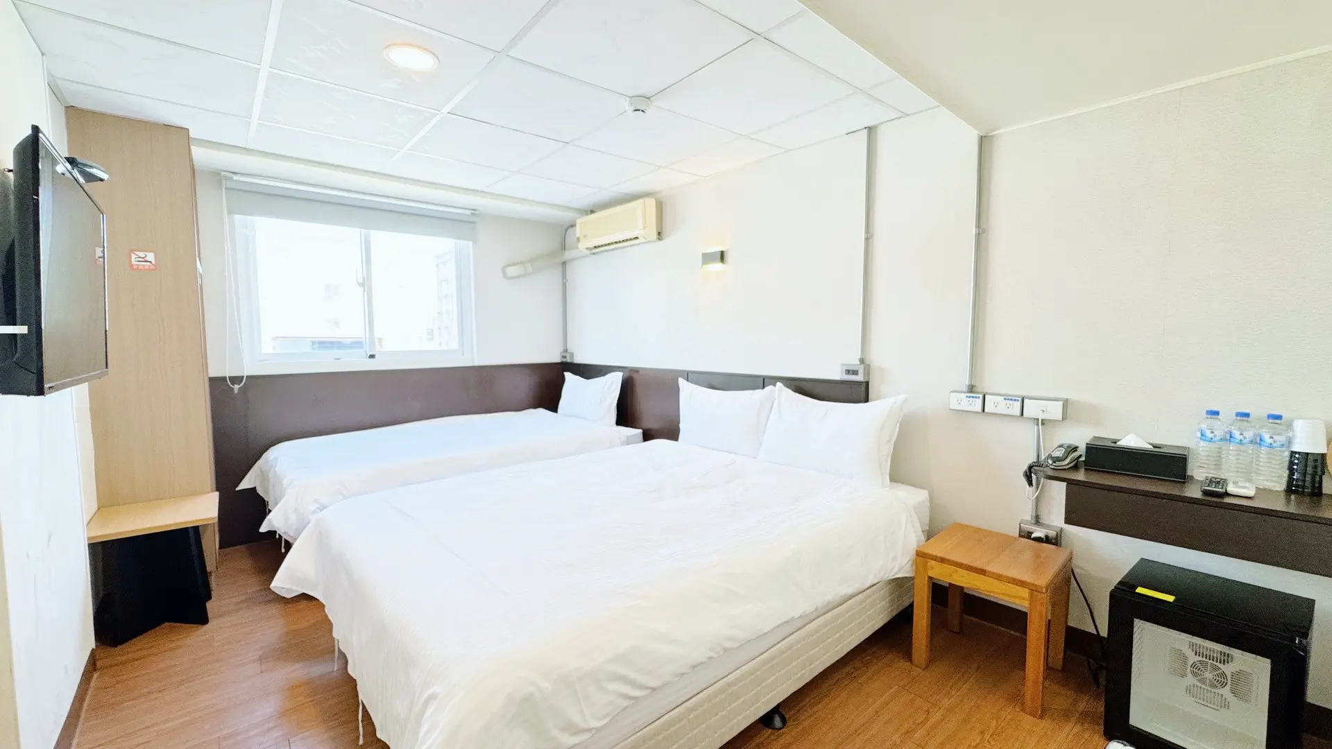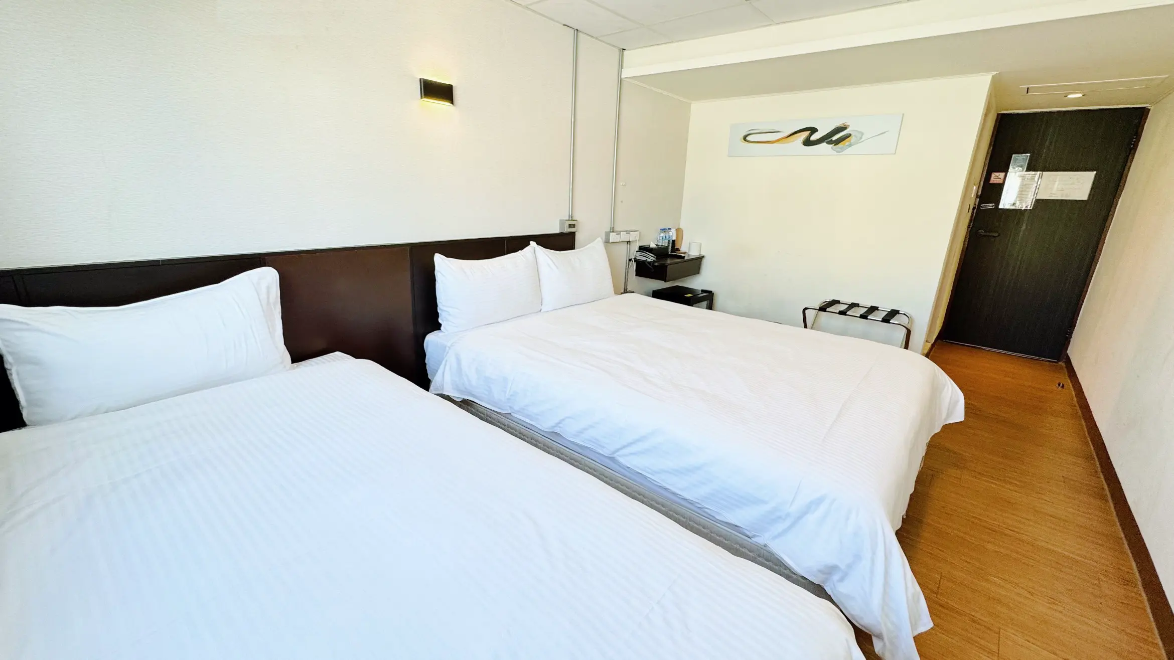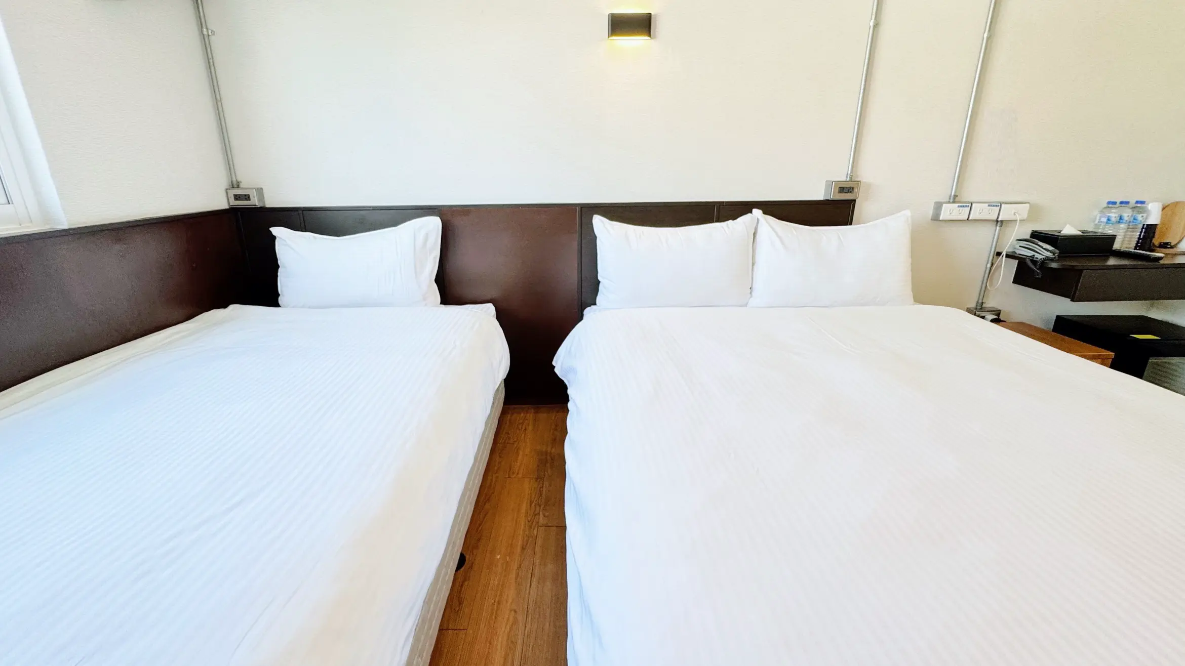 簡約設備兼具商務與休閒機能,房型為一大床與一小床,平面電視(可收看有線頻道),提供您更自由的休憩空間。